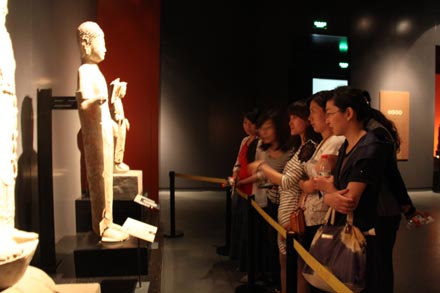 山東省博物館是山東省文化建設(shè)的重要標(biāo)志,也是濟南城市建設(shè)的新亮點,館藏文物20多萬件,為傳承齊魯文明、弘揚優(yōu)秀傳統(tǒng)文化發(fā)揮著重大作用。在講解員的引導(dǎo)下,全體黨員、團員依次參觀了“佛教造像藝術(shù)展”、“漢代畫像藝術(shù)展”、“明代魯王展”、“館藏書畫展”、“孔子文化展”、“山東歷史文化展”等展廳。大氣莊重的佛教造像,精煉質(zhì)樸的漢代畫像石,揮灑自如的書法作品,博大精深的孔子文化,精美豐富的瓷器,巧奪天工的魯繡,源遠(yuǎn)流長的山東文化等都給全體團員青年留下了深刻印象。