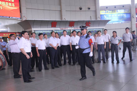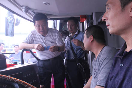 王副局長(zhǎng)先后視察了濟(jì)南長(zhǎng)途汽車(chē)總站的安檢、總服務(wù)臺(tái)、檢票、售票、熱線等崗位,與黨的十八大代表、總站金牌檢票員李文親切交談,勉勵(lì)她在平凡的服務(wù)一線崗位上將親情服務(wù)持續(xù)發(fā)揚(yáng)下去。王副局長(zhǎng)一行領(lǐng)導(dǎo)專(zhuān)門(mén)登上代臥車(chē)、臥鋪車(chē),向安全行車(chē)370萬(wàn)公里“零事故”駕駛員、省勞模賈湘鳴及宜昌臥鋪班車(chē)駕乘人員詳細(xì)詢問(wèn)了車(chē)輛改造、安全運(yùn)營(yíng)以及車(chē)載GPS的使用情況;在安全監(jiān)控中心重點(diǎn)了解了車(chē)輛3G視頻及GPS監(jiān)控管理情況。