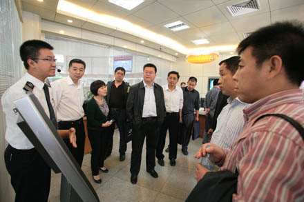 10月11日下午,省委黨校省直分校第28期處級干部進修班百名學員在副校長尹夙、干訓處霍憲森處長的帶領下,來到集團公司調研黨建、企業文化建設等工作。一行領導在集團黨建示范點濟南長途汽車總站相繼走訪了售票處、檢票處、總服務臺、班車報班處、熱線以及集團公司安全運營管理監控中心,對集團公司黨建、企業文化建設、創先爭優活動開展情況以及總站班組文化建設等逐一進行咨詢、了解,對集團特色黨建工作給予充分的肯定與贊賞。集團公司董事長、黨委書記吳宗昌、黨委副書記楊國強等領導陪同參加了調研活動。