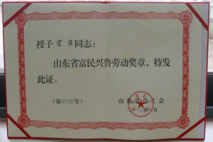 宋洋被山東省總工會授予富民興魯勞動獎?wù)?/h1>