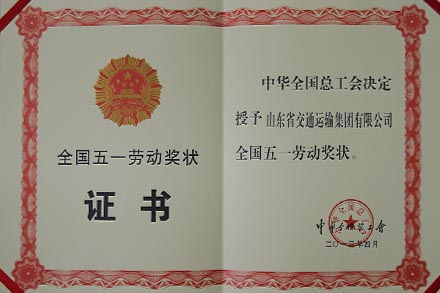 近日,從中華全國總工會傳來喜訊,山東省交通運輸集團有限公司被授予“全國五一勞動獎狀”。